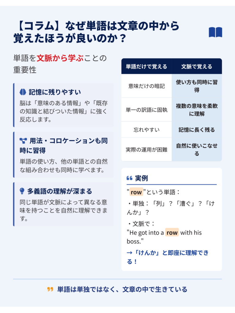 【コラム】なぜ単語は文章の中から覚えたほうが良いのか?