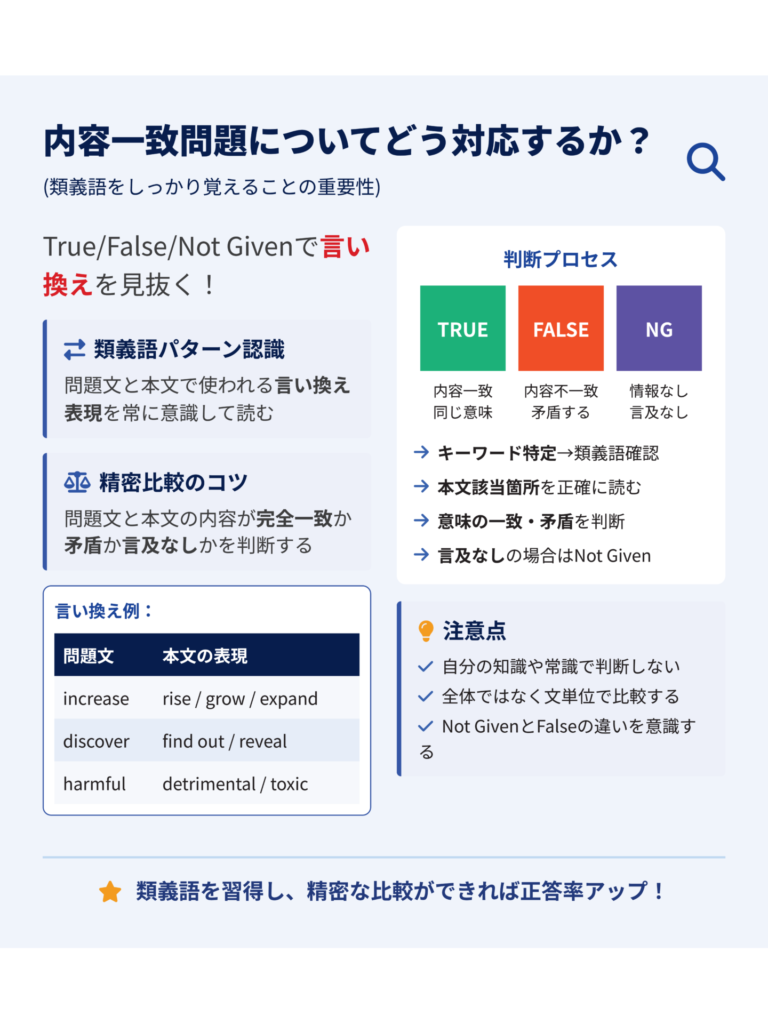 豊富な語彙を柔軟に使いこなし、言い換え(パラフレーズ)ができるかどうかが評価されます。