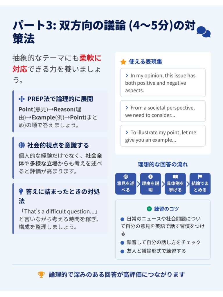 パート3は、あなたの思考力と英語力を見せる場です。