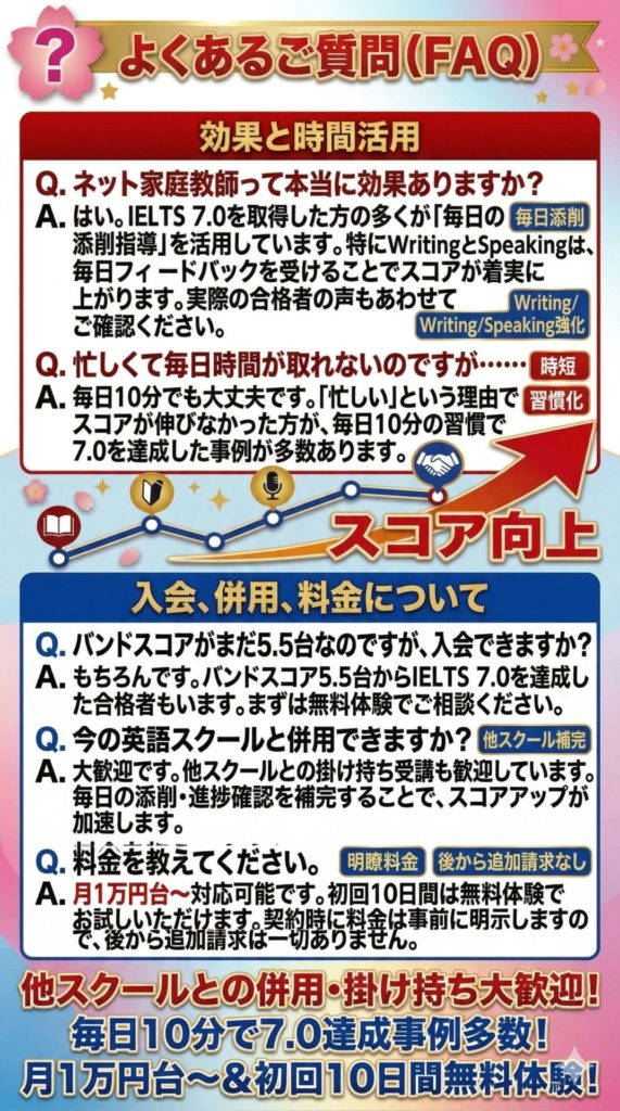 毎日学習会出身講師による添削指導 ※写メでいただいて、その場で音声で添削します。