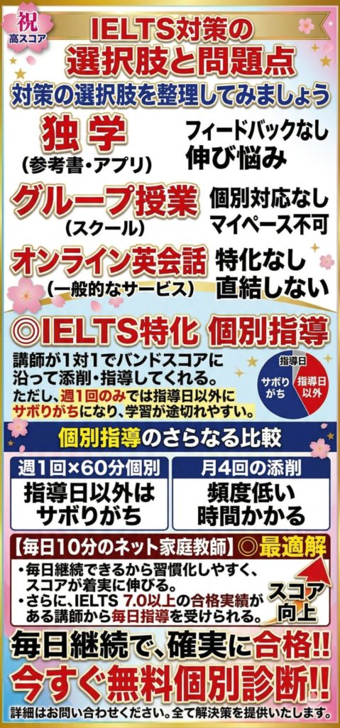 IELTSのスコアは、単なる知識量ではなく、それをどう運用しているかを問われる試験です。