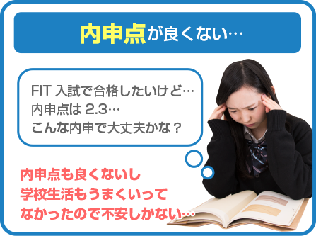 私がFIT入試を受験しようと思ったのは、高校三年になってからです。 幸いにも評定が4.0以上あったので、B方式を受けることにしました。決断したのは早かったのですが、FIT入試に落ちた場合のリスクを考え、夏休みまではほとんどの時間をセンターの受験勉強に当てていました。