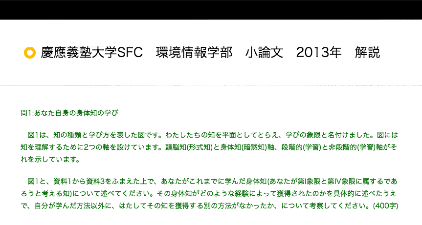 慶應法学部のFIT入試を始め一般的なAO入試では、一般入試と異なり「赤本」のような過去問解説が市販されていません。他のAO対策予備校のサイトを見ても、毒にも薬にもならないようなノウハウ集はありますが、慶應法学部FIT入試を始めとしたAO入試の過去問解説が公開されている例はありません。それは、こうした過去問解説をつくる手間に加えて、赤本などで過去問解説が掲載されておらず、大学側からも模範解答の提示がないため、そもそも過去問解説を作れないという問題もあります。