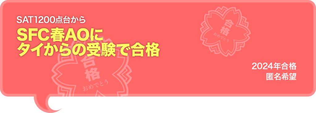 私は、他にも、イギリスの大学に17校合格を頂きました。これは、自分自身の大きな自信に繋げて、慶応SFCでも、地に足をつけて頑張りたいです。