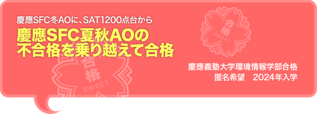 その後、夏AOでの不合格を経験しましたが、引き続き指導を受け、冬AOで無事合格を勝ち取る事ができました。
