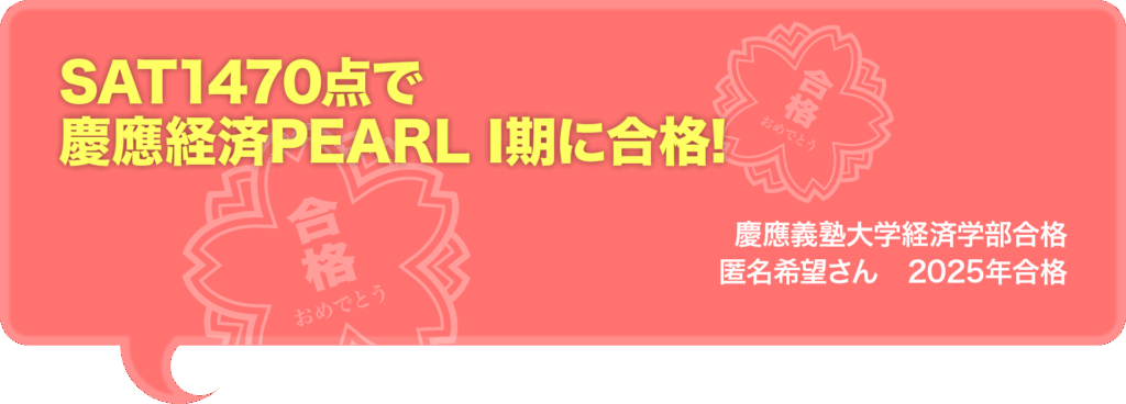 慶應義塾大学経済学部PEARLに合格しました。林先生にはPEARL入試において重要視されるエッセイの作成の指導をしていただきました。PEARLでは英語での志望理由書を書きます。