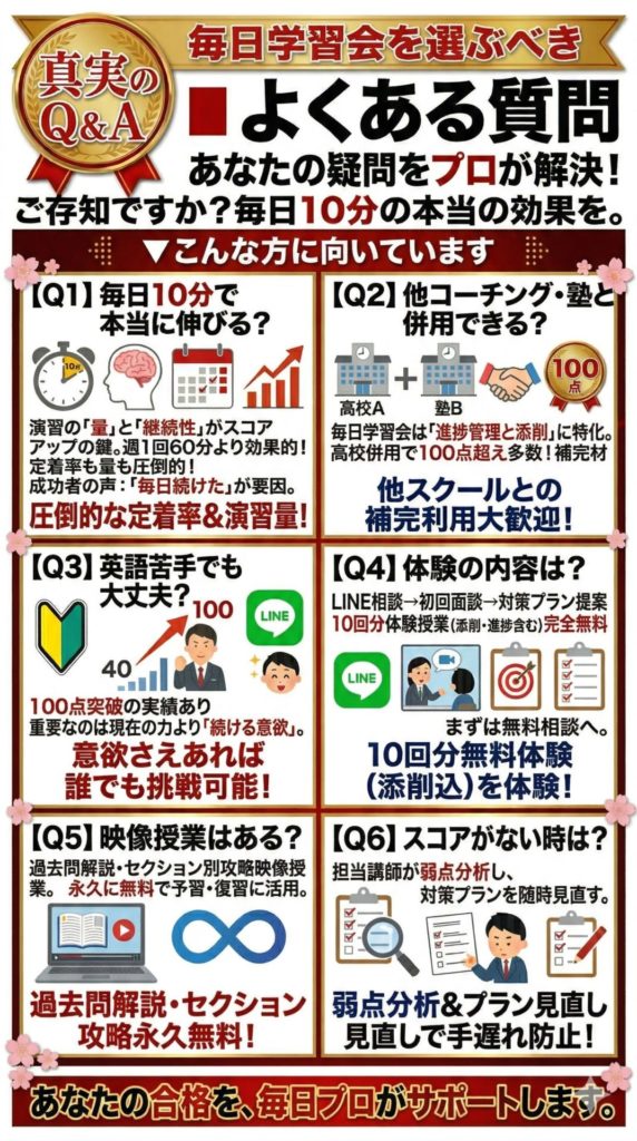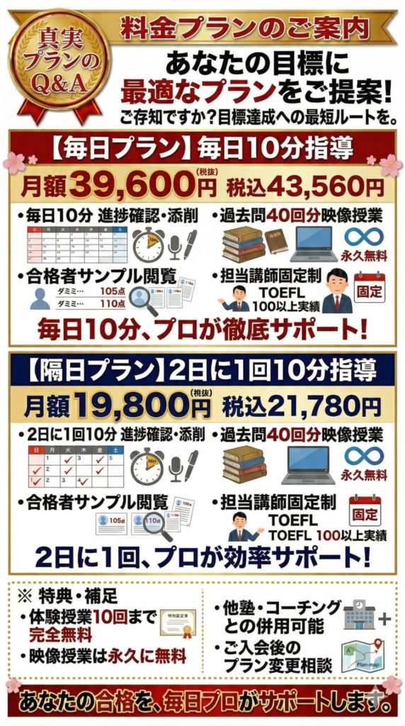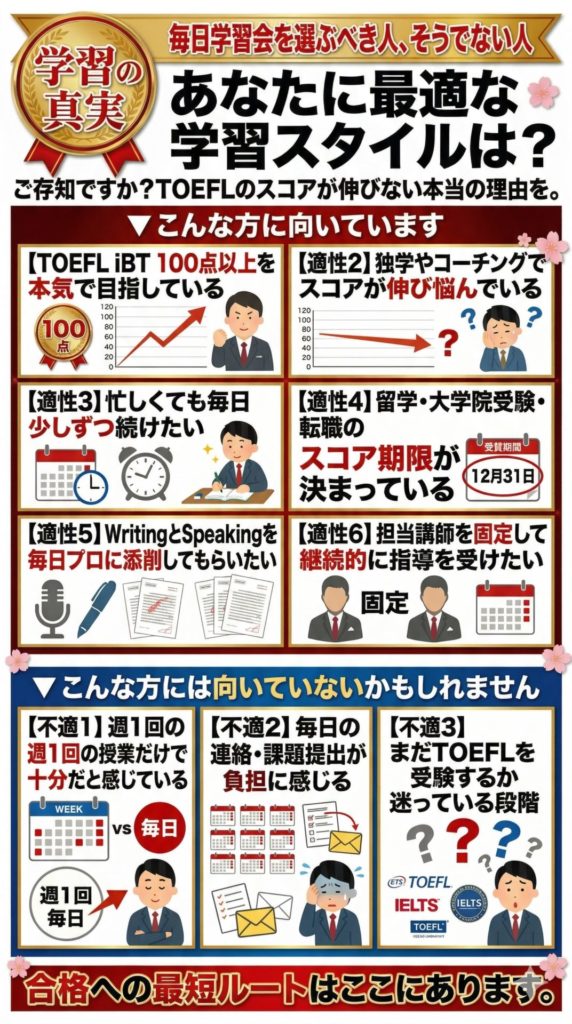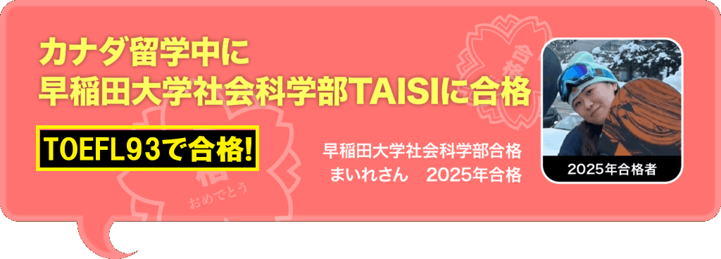 毎日学習会でも、TOEFL iBTを用いて有名大学に合格出来た生徒がいらっしゃいます。